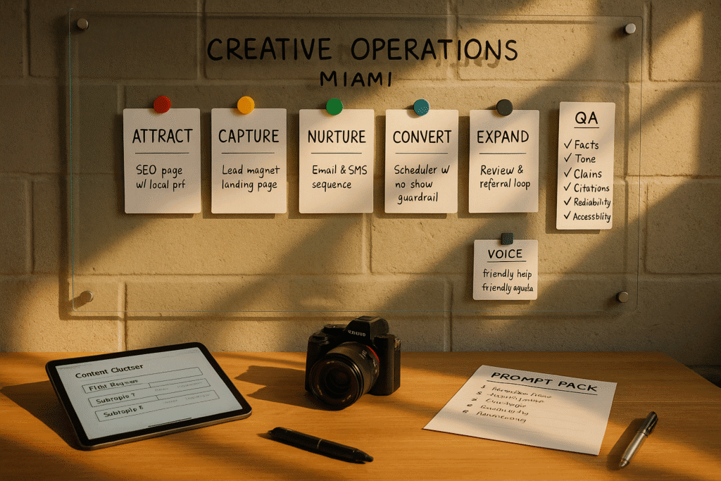 Generic content won’t win in Miami. A clear voice framework ensures every asset—from blog to Reel to email—sounds like a real person your audience would trust.